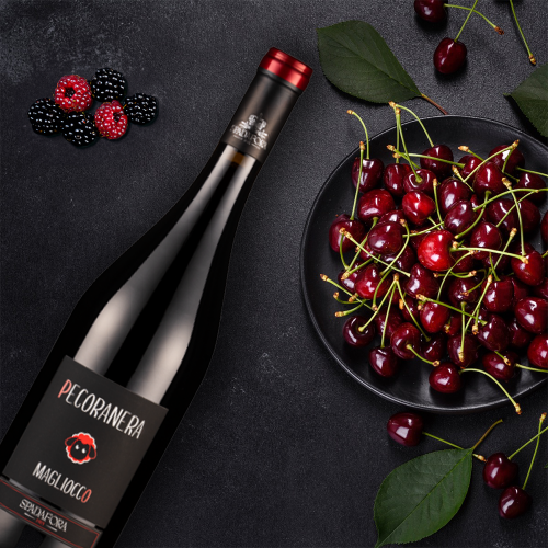 Červené víno Spadafora Pecoranera Rosso IGP s intenzivní rubínově červenou barvou, intenzivně ovocnou vůní s převahou tónů třešní morello a lesních plodů. Chuť je jemná a elegantní, sametová tříslovina, zdrženlivá kyselinka, víno příjemné pro chuť, nekonformní par excellence.