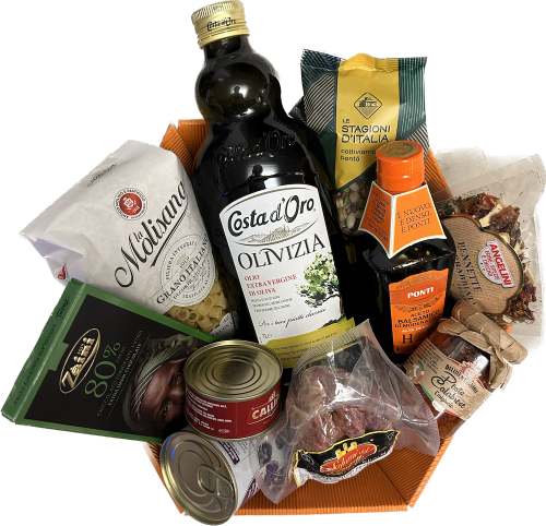 Dárkový koš PLINIUS je plný fantastických dobrot z Itálie, a to převážně z jižní slunné Kalábrie. Mezi jinými, v tomto koši naleznete černé olivy, vynikající konzervu tuňáka, balzamikový ocet , nebo také italský salám.